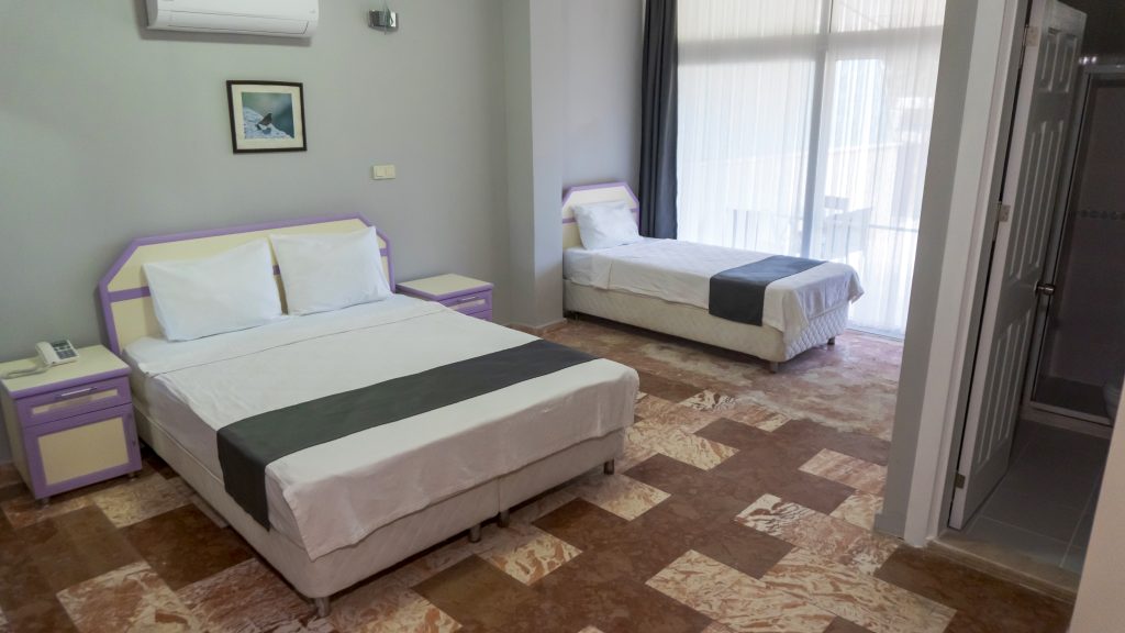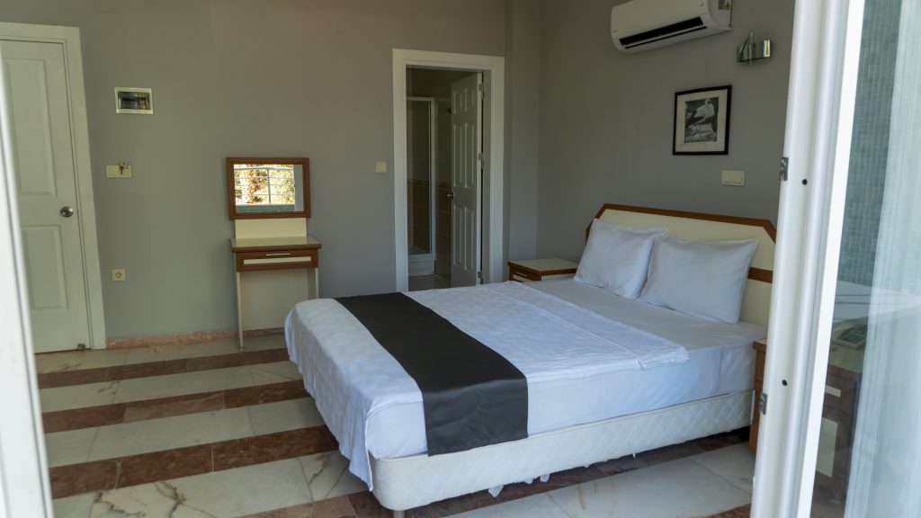 Çift Kişilik Odalarımız huzurlu bir konaklama sunan bu oda tipimizde bir adet çift kişilik yatak yer almaktadır. Oda içerisinde klima, mini buzdolabı, televizyon, özel banyo ve giysi dolabı bulunur.